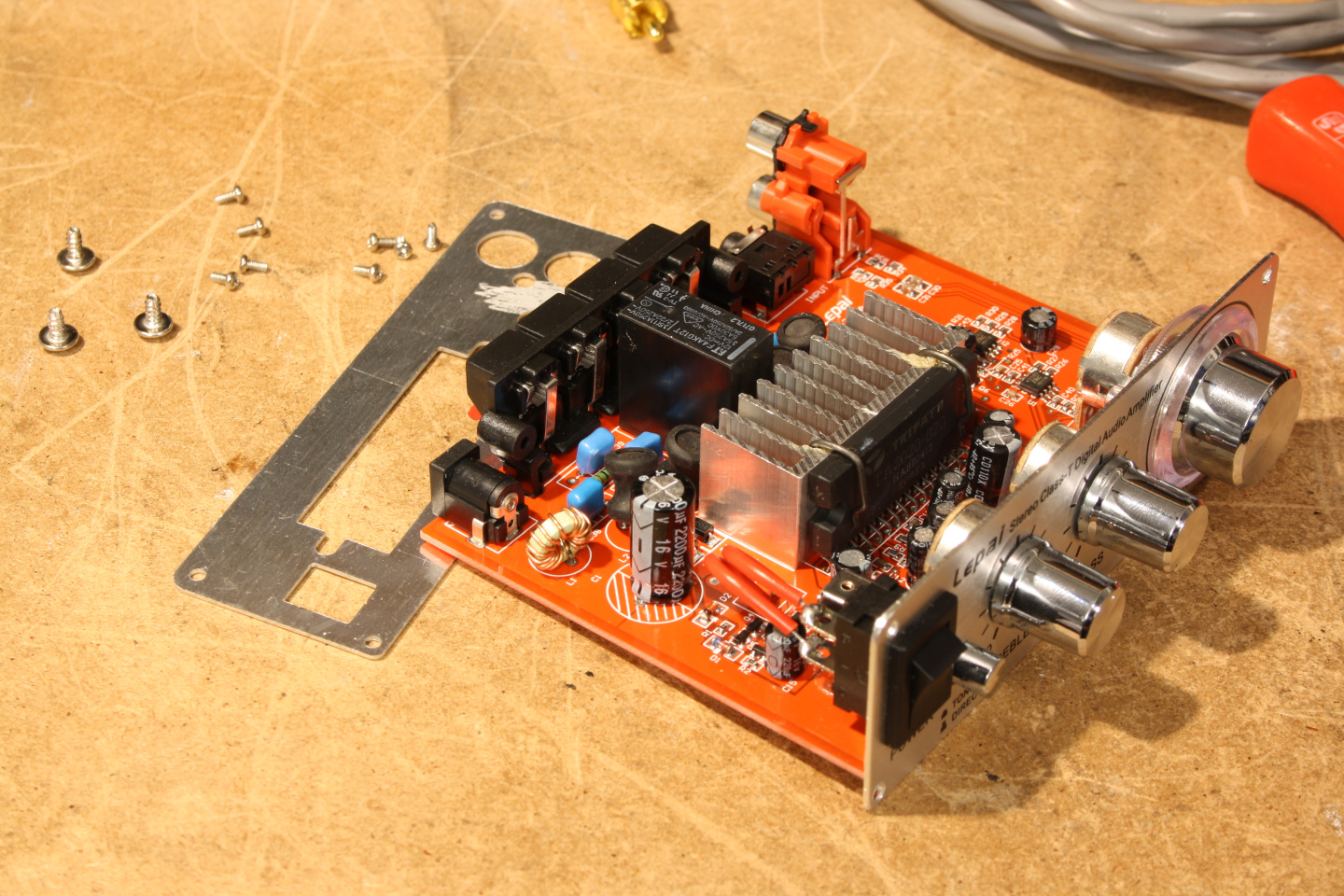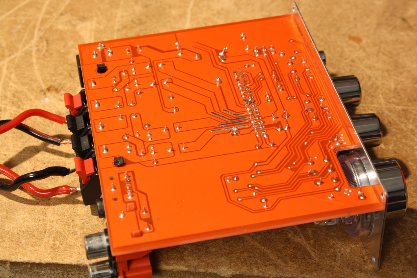 The biggest issue with this unit is the build quality. The casing is good quality extruded aluminium, but the quality control and above all the potentiometers (volume control, bass and treble) are of atrocious quality. The unevenness and scratching of the volume control can be fairly bothersome, especially when close to zero. Since the volume control is connected to adjust the gain of an op-amp rather than simply attenuate the input signal, a bad connection in it can lead to very loud popping and oscillation.