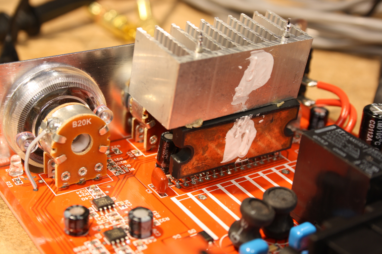 BTW, mine came with the chip on an angle and barely touching the heat sync, just like yours. It also had a mix of crappy name (Chang) and no name Chinese electrolytic caps throughout, with the exception of a single Nichicon RZ series 3300uf 16V, and two counterfeit UCC “BF” series caps (UCC never made a BF series.) Unexcusable quality control, even at <$20.