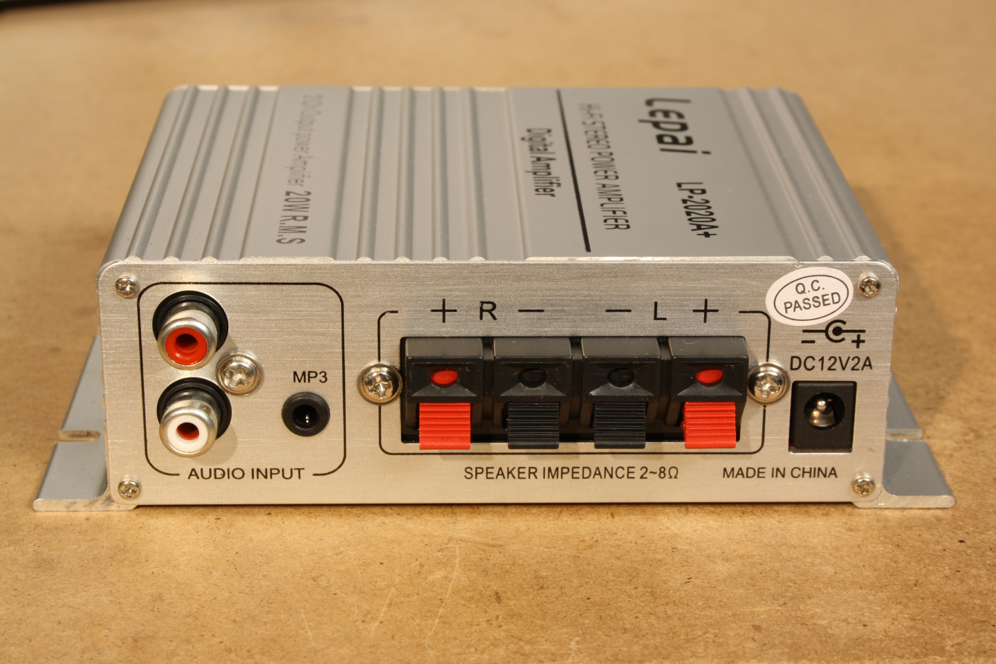 I just got a Lepai LP2020TI that claims 20 watts per channel RMS into 4 ohms. After testing it with the included 12v power supply, it was determined that it will make 15 watts per channel RMS before clipping, certainly not 20 watts RMS. Another clue to the false advert was the published power requirements – 12v @ 3 amps. That’s only 36 watts! The amp claims 20 WPC RMS; that’s 40 watts total. Ok, so the amp is more than 100% efficient?!?! Nope, don’t think so!