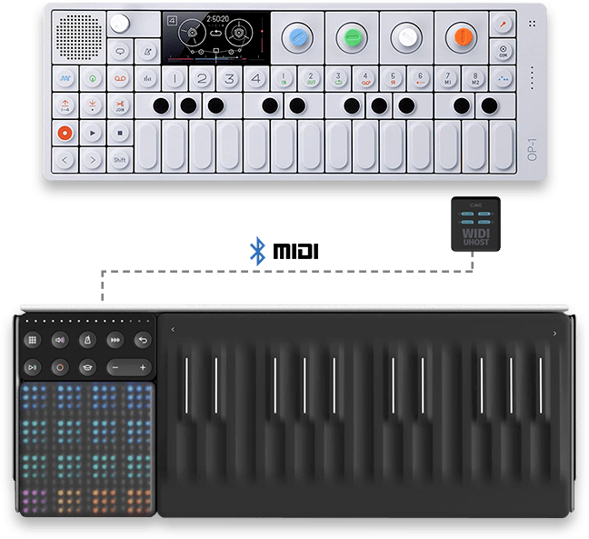 Pair USB MIDI devices wirelessly with any Bluetooth MIDI device using one (1) WIDI Uhost.